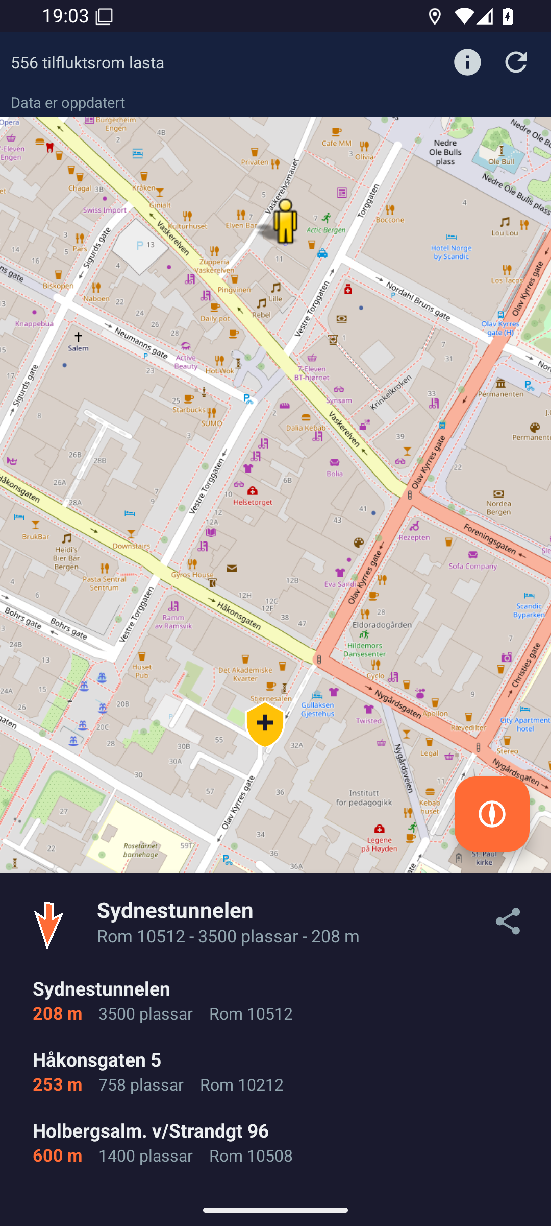 Automatiserte skjermbilete for alle tre språk (en-US, nb-NO, nn-NO) med Maestro-flyt. Fire bilete per språk: kartvisning, valt tilfluktsrom, kompassvisning og sivilforsvarsinfo. GPS-posisjon er sett til Bergen sentrum (Torgallmenningen). Co-Authored-By: Claude Opus 4.6 <noreply@anthropic.com>